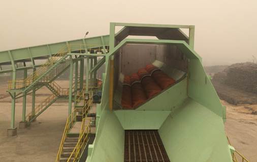 剥皮鼓及出料输送机 辊台输送机及削片机进料皮带输送机